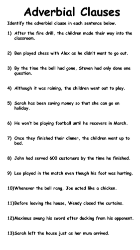 What Is A Fronted Adverbial Free Mat And Worksheets from themumeducates.com Let him who has been deceived complain. Commas with adverbial phrases and clauses when an adverbial phrase or clause is at the front of a sentence (called a fronted adverbial), use a comma afterwards. A relative clause is a dependent clause that modifies a noun or noun phrase in the independent clause. In each of the dependent clause, the first word is a subordinator. Understanding adjective and adverb clauses starts with knowing their differences. The subordinators do the work of connecting the dependent clause to another clause to complete the sentence. The adverbial clause describes when and where the action of the main clause, i had only two things on my mind, took place. A dependent clause alone cannot form a complete sentence.